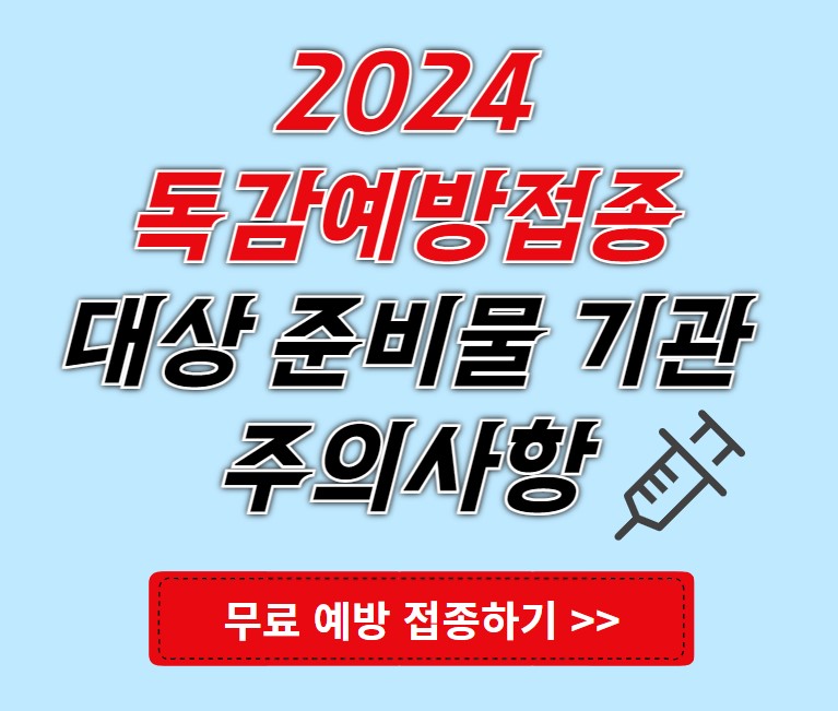 본인이 이런 질환이나 알레르기가 있는지 모를 수 있기 때문에 혹시나 접종 이후 이상 증상이 보이면 바로 다시 방문하셔서 진단을 받으시는 것이 좋습니다. 그럼 2024 독감예방접종 무료 대상 준비물 기관 주의사항 확인하시고 올바른 예방 하시길 바랍니다.